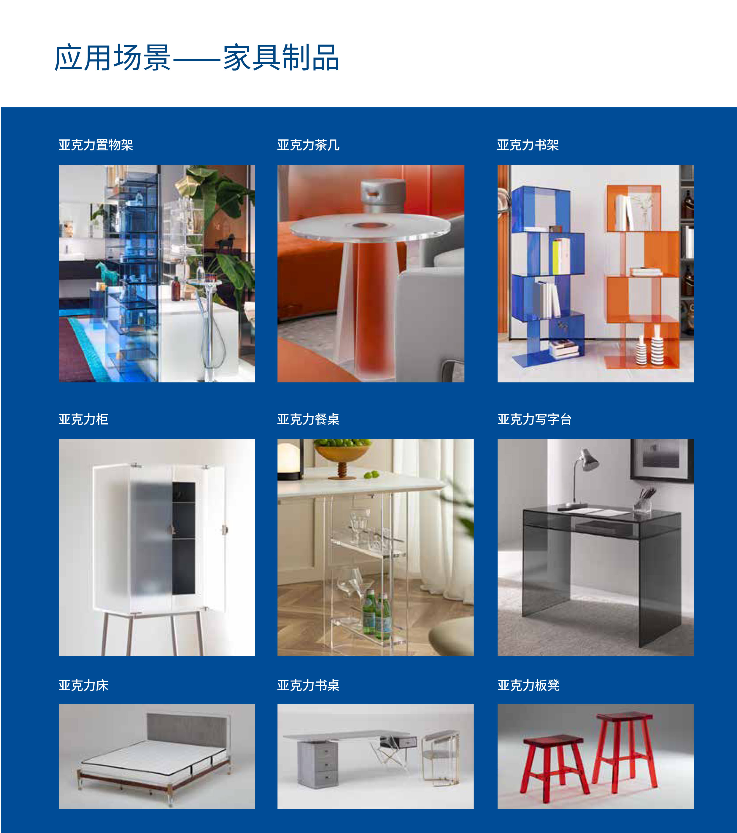 通过 DONCHAMP® 亚克力板制作的家具除了具有功能性之外,还可以呈现出各种风格,让您的家具更加时尚。用亚克力做成的艺术制品既实用又美观,赋予房间独特的魅力。